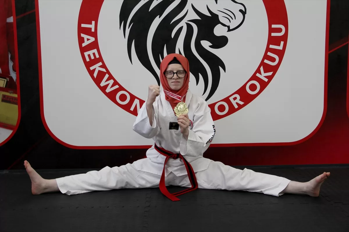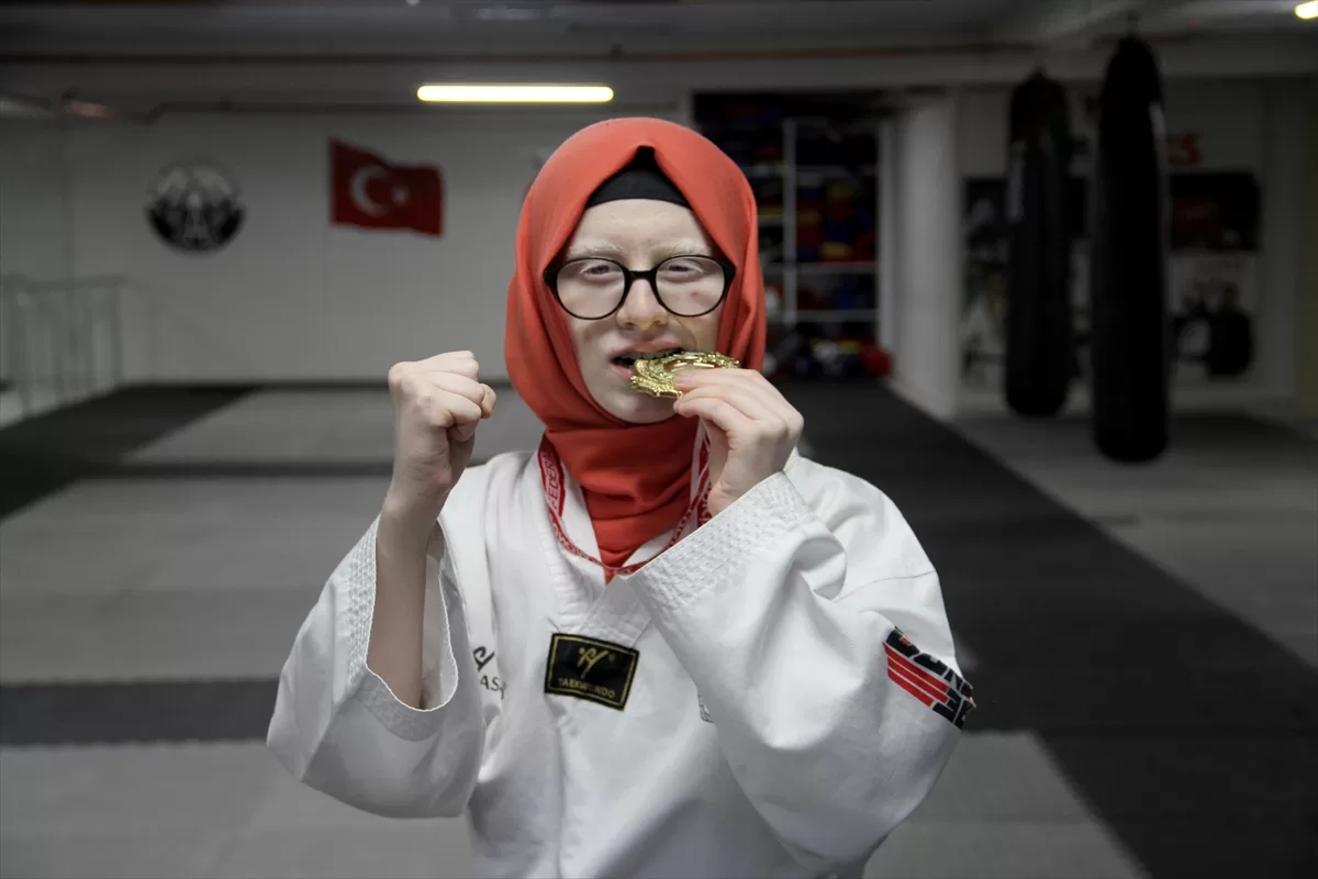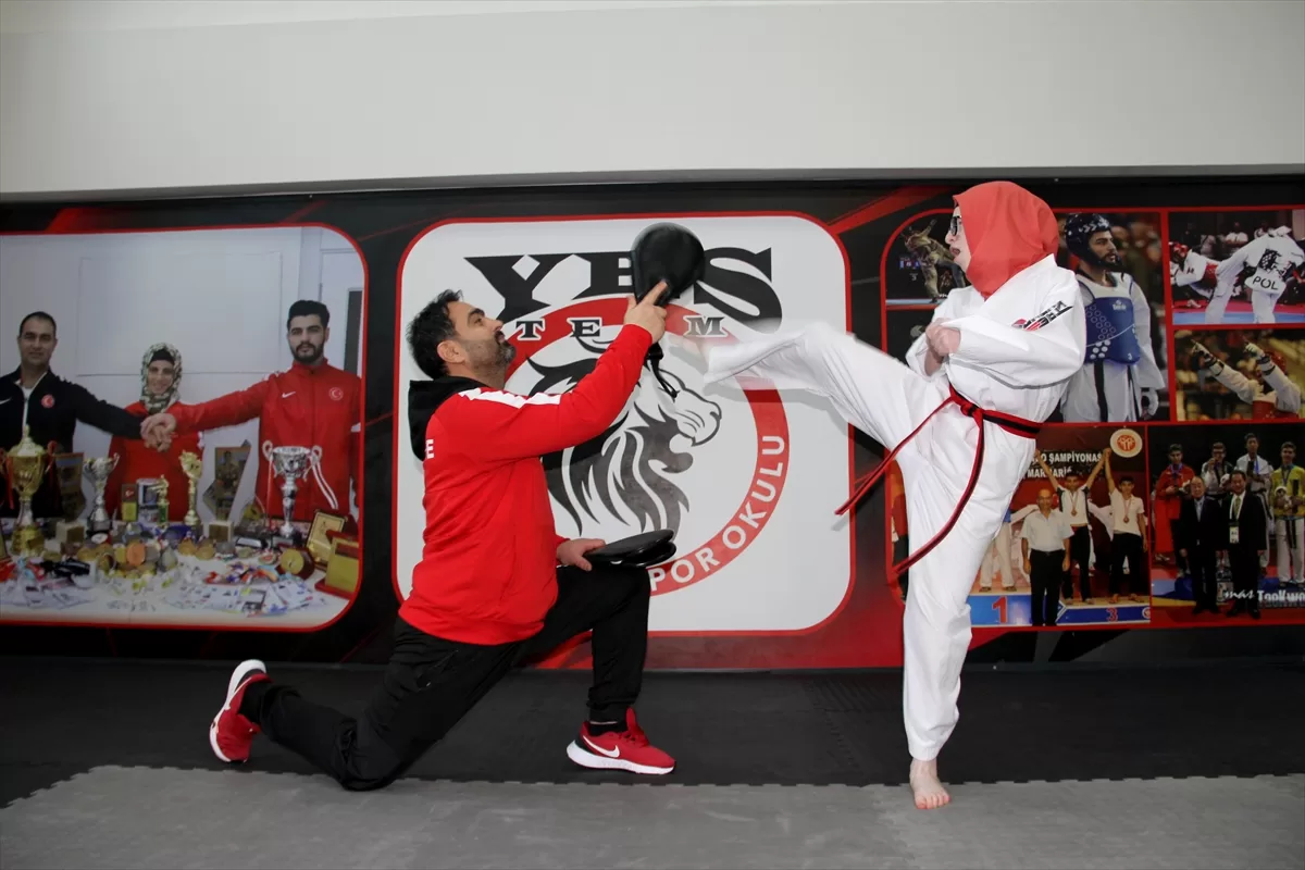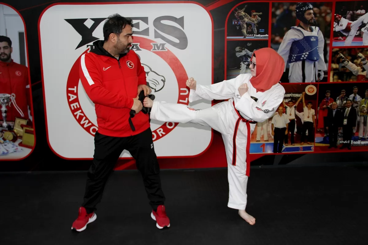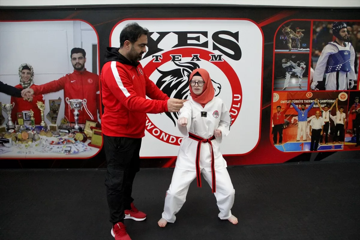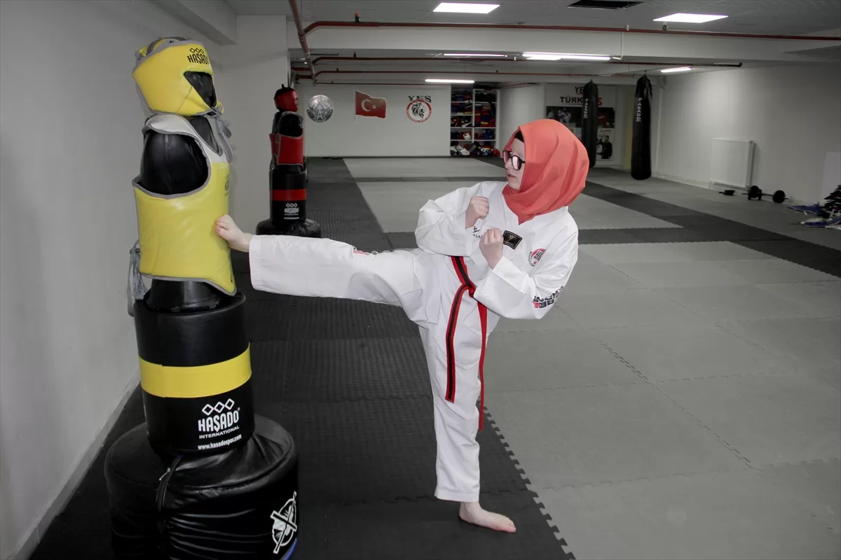 KAYSERİ (AA) – MUHAMMED KISIR – Kayseri'de sosyal medyadaki videolardan etkilenerek 6 ay önce başladığı tekvandoda milli takıma seçilme başarısı gösteren 18 yaşındaki işitme engelli Merve Tüm, altın madalya hedefiyle Dünya İşitme Engelliler Tekvando Şampiyonası'na hazırlanıyor.