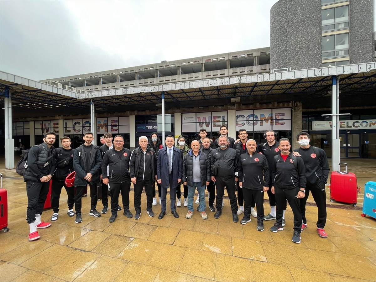 Şampiyonalar için İngiltere'ye ulaşan milli takım kafilelerini Manchester Başkonsolosu Seyfi Onur Sayın karşıladı.