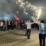 Taraftarlar, marşlar ve şarkılar eşliğinde Atabarı ve horon oynadı, meşale yaktı ve havai fişek gösterisinde bulundu.