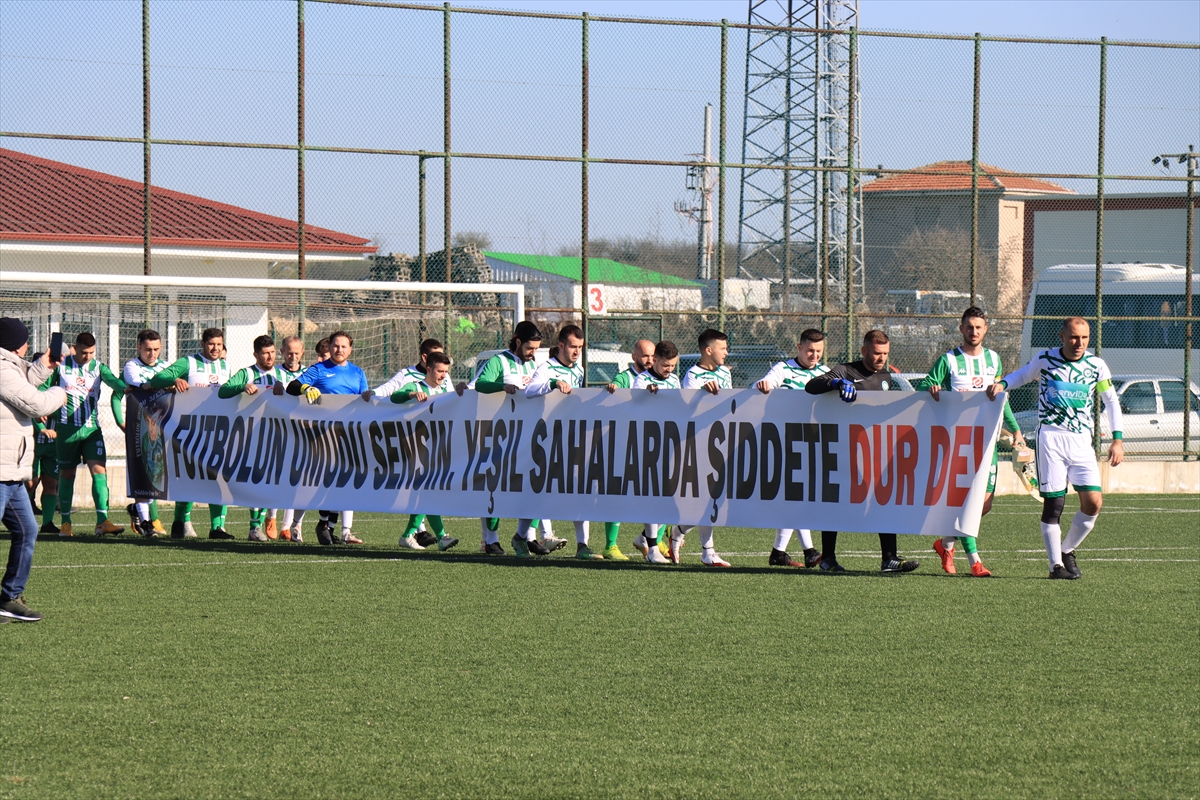 Pehlivanköy İlçe Stadı'nda oynanan maçta futbolcular, Umut Karakaş'a destek vermek amacıyla sahaya "Futbolun umudu sensin, yeşil sahalarda şiddete dur de" ve "Sporda şiddet ve ırkçılığa hayır, geçmiş olsun Umut Karakaş" pankartlarıyla çıktı.