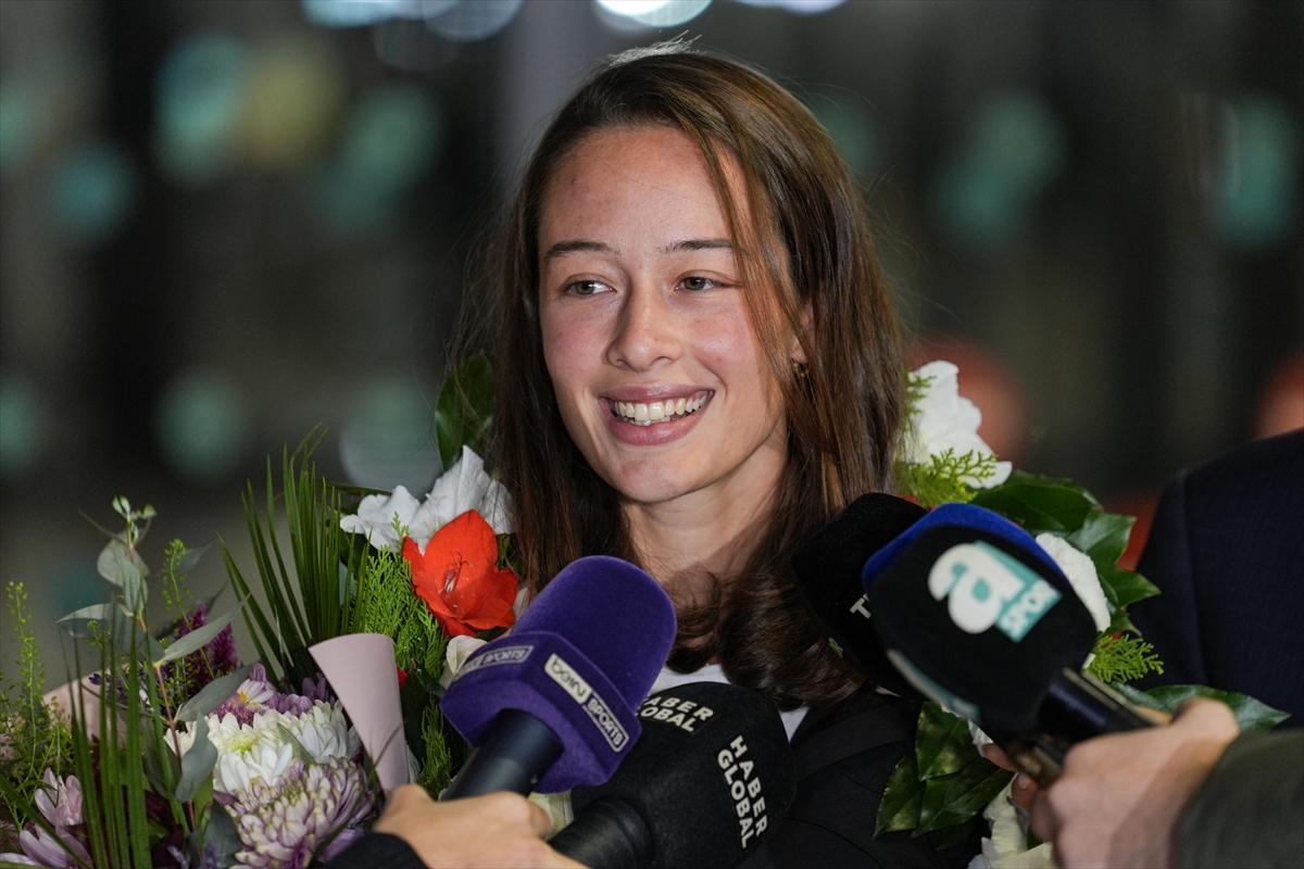 Milli sporcu, İstanbul Havalimanı VIP Terminali'nde Türkiye Tenis Federasyonu ile ENKA Spor Kulübü yetkilileri tarafından çiçeklerle karşılandı.
