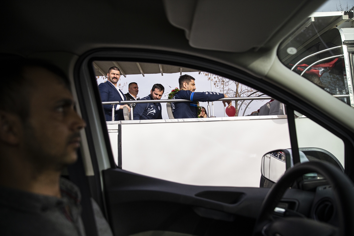 Milli güreşçiler, törenin ardından üstü açık otobüsle şehri gezdi.