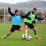 Daha sonra geniş alan pas çalışması yapan kırmızı-beyazlı ekip, idmanı orta şut çalışması ve taktik maçla tamamladı.
