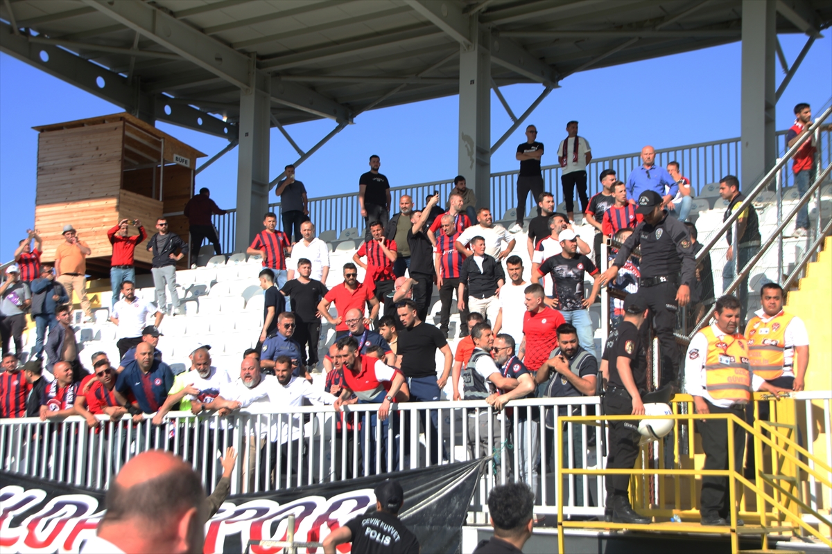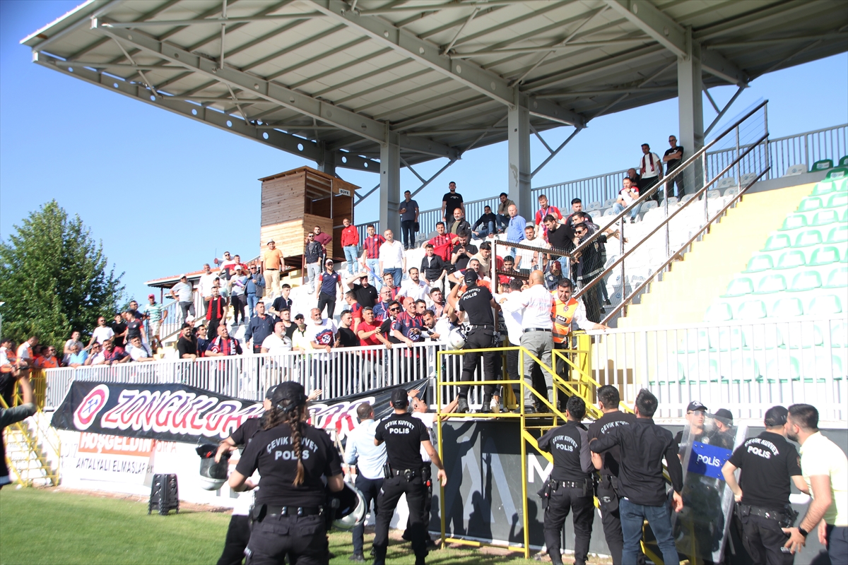 Güvenlik güçleri kısa sürede araya girerken, Zonguldak Kömürspor'lu oyuncular soyunma odasına götürüldü.