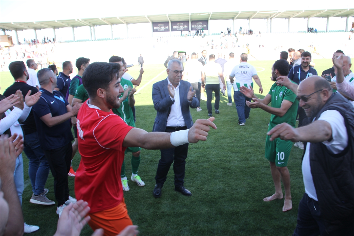 Serik İsmail Ogan Stadı'nda oynanan maçı 1-0 kazanan Serik Belediyesporlu futbolcular, ligde kalmanın sevincini saha içinde kutladı.