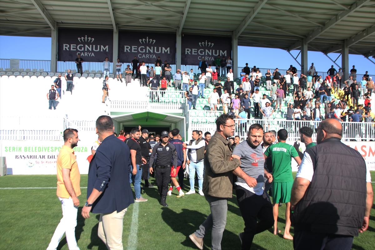 ANTALYA (AA) – TFF 2. Lig Beyaz Grup'ta oynanan Serik Belediyespor-Zonguldak Kömürspor maçında futbolcular arasında kavga çıktı.