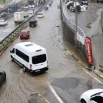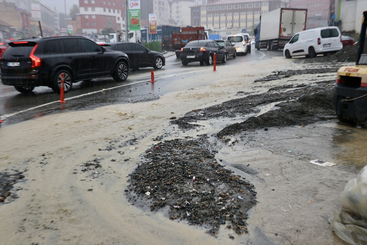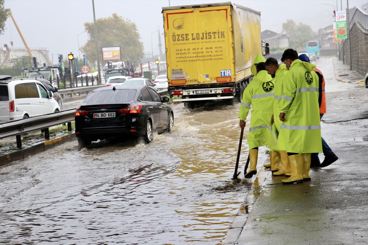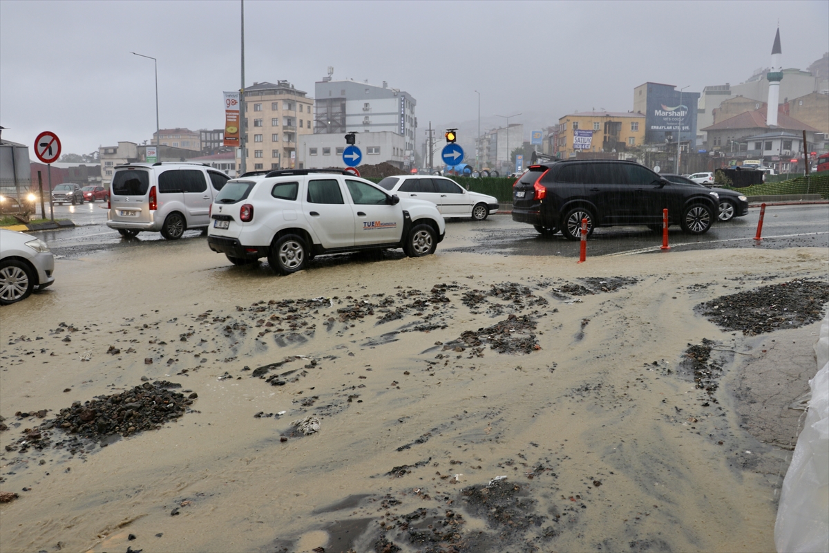 TRABZON (AA) – Trabzon'un Ortahisar ilçesinde etkili olan sağanak dolayısıyla yollarda su birikintilerdi oluştu, bazı sürücüler zor anlar yaşadı.