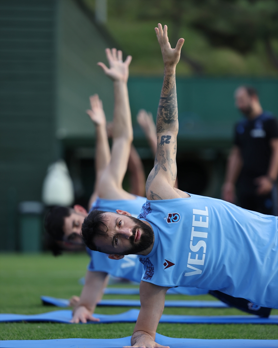 Bordo-mavili futbolcular, teknik direktör Abdullah Avcı yönetiminde Mehmet Ali Yılmaz Tesisleri'ndeki antrenmanda iki grup halinde çalıştı.