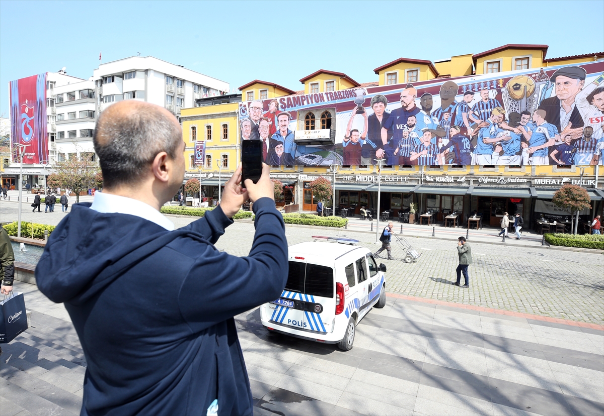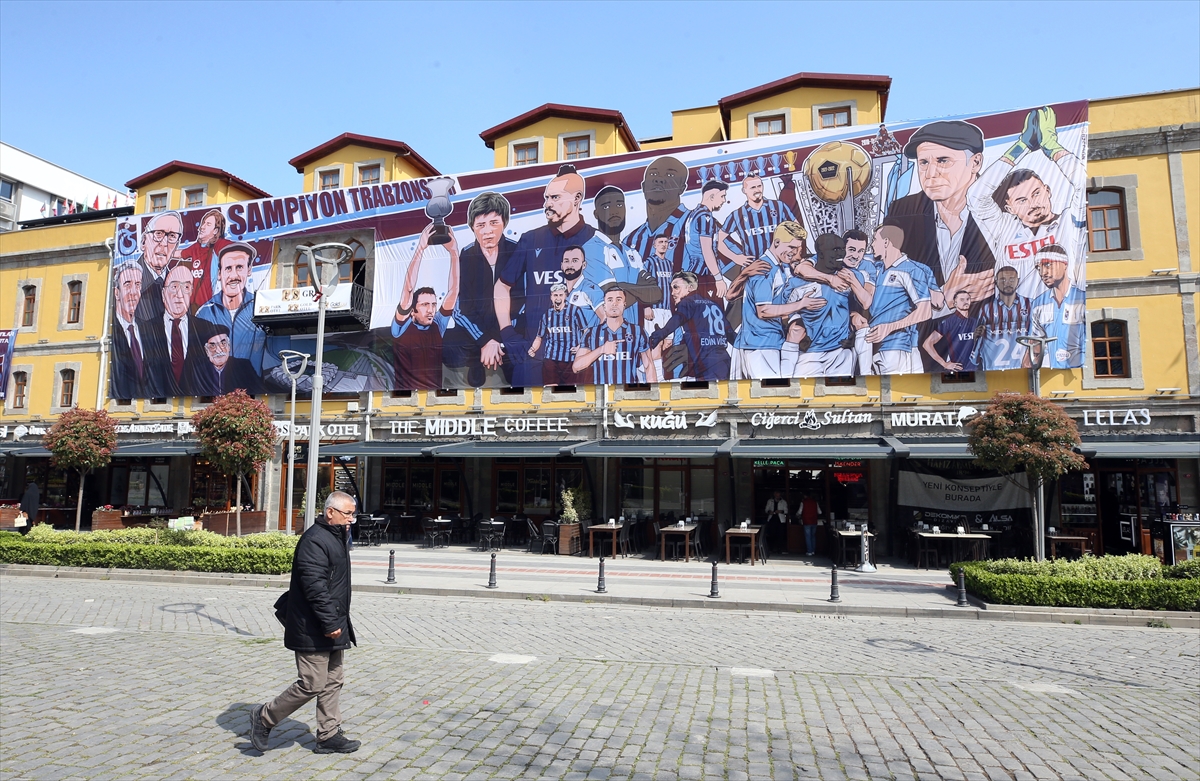 TRABZON (AA) – Trabzon'da şehir merkezindeki bir otelin ön cephesine asılan yaklaşık 350 metrekarelik Trabzonspor afişi, taraftarların ilgi odağı oldu.