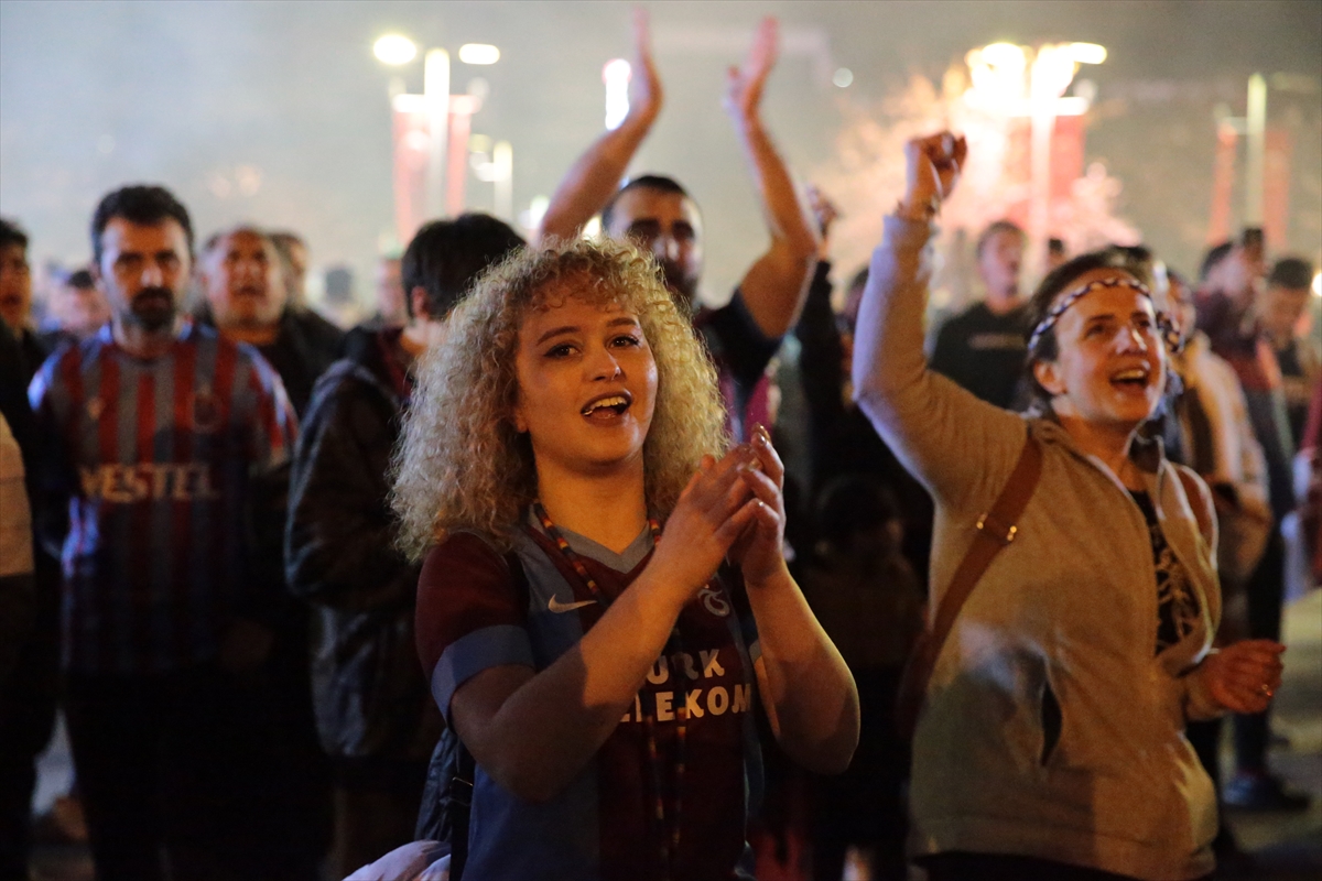 Ellerinde Trabzonspor bayraklarıyla toplanan grup marşlar söyledi, tezahüratta bulundu, meşaleler yakıp horon tepti. Bir grup Trabzonspor taraftarı araçlarıyla konvoy oluşturarak tur attı. Bazı taraftarlar ise şampiyonluk sevincini evlerinde yaşadı. Balkonlara çıkan Trabzonsporlu taraftarlar tezahüratlarda bulundu.