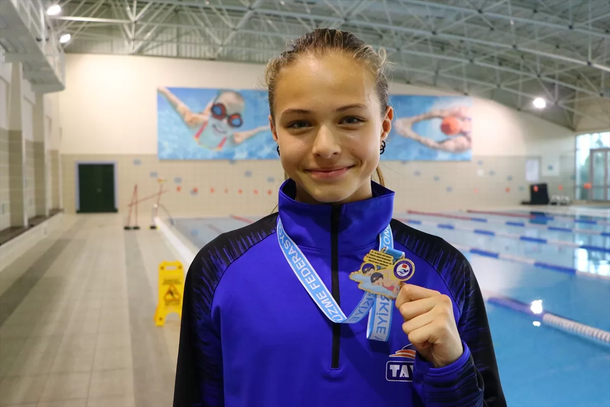 Derin Anbarlı da 6 yaşında başladığı yüzmede geçen ay Denizli'de düzenlenen 12 Yaş Türkiye Şampiyonası'nda altın ve bronz madalya elde etti.