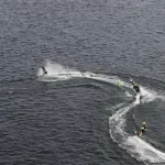 Sporcular, Hasankeyf Limanında özel olarak oluşturulan flyboard ile akrobasi hareketleri gerçekleştirerek iki etaptan oluşan yarışlara çıktı.