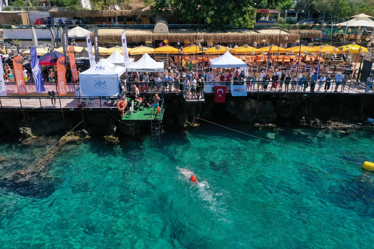 Kaş Belediyesi tarafından düzenlenen 24. Uluslararası Likya Kaş Kültür Sanat Festivali'nin kapanış etkinliği olan organizasyonda sporcular, Yunanistan'ın Meis Adası'yla Antalya'nın Kaş ilçesi arasındaki 7 kilometrelik parkurda kulaç attı.