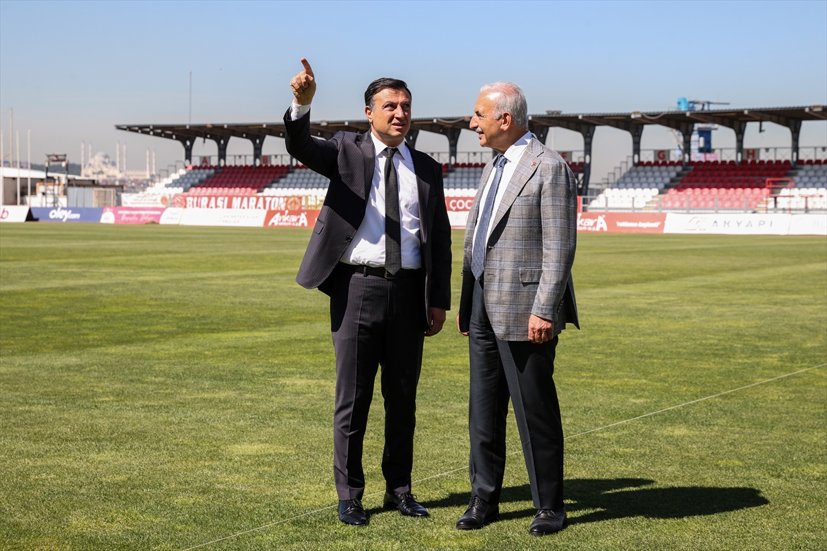 "Projeleri, zemin etütleri bitti. Önümüzdeki günlerde kısmet olursa aynı anda 3 bölgeden stadı yapmaya başlayacağız ve 3-4 ay içinde bitirmeye çalışacağız. Eğer yetişmeyecek gibi olursa standartlara uyduracağız ve diğer taraftan stat yapılmaya devam edecek. Yapıma aynı anda U biçiminde 3 yerden başlanacak. İsmet bey, Nef stadı, Başakşehir Fatih Terim Stadı gibi statların mimarıdır. Bu işi çok iyi biliyor. Şu an kazmayı vurma aşamasındayız. Cumhurbaşkanımızın talimatıyla Spor Bakanımız buraya geldiler, araştırdık. Kale arkasındaki gaz salınımı 0'a gelmiş vaziyette. Şu an orada çalışmalarımızı yapabiliriz."