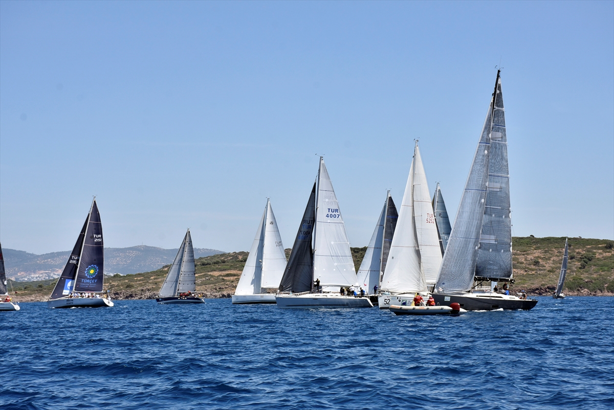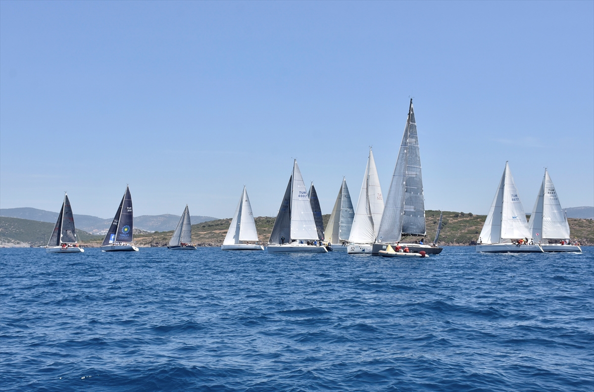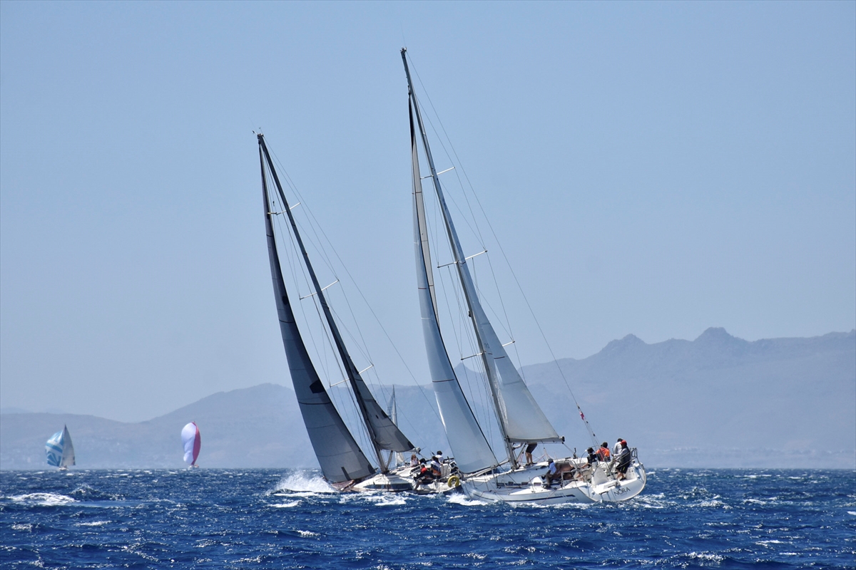 Bodrum açıklarında 3 sınıfta düzenlenen yarışlarda ekipler, coğrafi rotada yelken açtı.