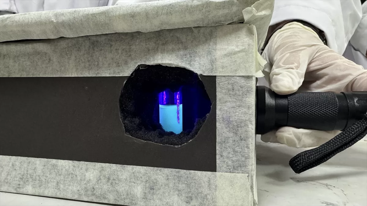 Deneyde zargana balığının kılçığından elde edilen sıvının ultraviyole ışık altındaki parlaması mavi ve yeşil tonlarında görülürken, test kitinde de benzer renkte parladığı gözlemlendi. Cıva çözeltisinde bekletilen kitte ise parlama olmadığı belirlendi